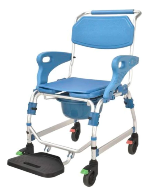 - Cadeira 4 em 1: Locomoção e transporte em locais interno, serve para banho, pode acoplar no vaso sanitário e pode ser usada para higiene de paciente;