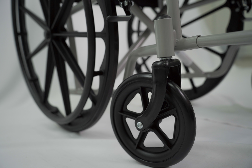 - Muito confortável para transporte interno; - Chassis em Aço Carbono, com pintura epóxi Antiferrugem; tendo Alta resistência a umidade, ideal para regiões de praias; - Protetor lateral de roupas; - Porta objetos; - Encosto em Nylon na cor Preta Acolchoado; - Assento em Nylon na cor Preta Acolchoado; - Duas rodas traseira de 24 polegadas com sistema de rolamento e blindadas; - Pneus traseiros PU (Maciço Antifuro); - Duas rodas Dianteiras de 8" x 1" (polegadas) ou 203mm - Permitem movimentação total em ambientes com espaço reduzido, giro 360 graus; - Apoio de Braço Acolchoado, dando maior conforto aos usuários; - Ideal para paciente com limitações de locomoção; - Design e modelo inovador; - Apoio de pés em plástico reforçado e removível; - Regulagem de altura dos apoios de pés; - Suporta paciente com até 110kg - Cor Cinza - GARANTIA : 06 meses na estrutura e 03 meses nos demais componentes após o recebimento do produto. - EAN : 0630941070017 - RESGISTRO DA ANVISA : 80791040018
