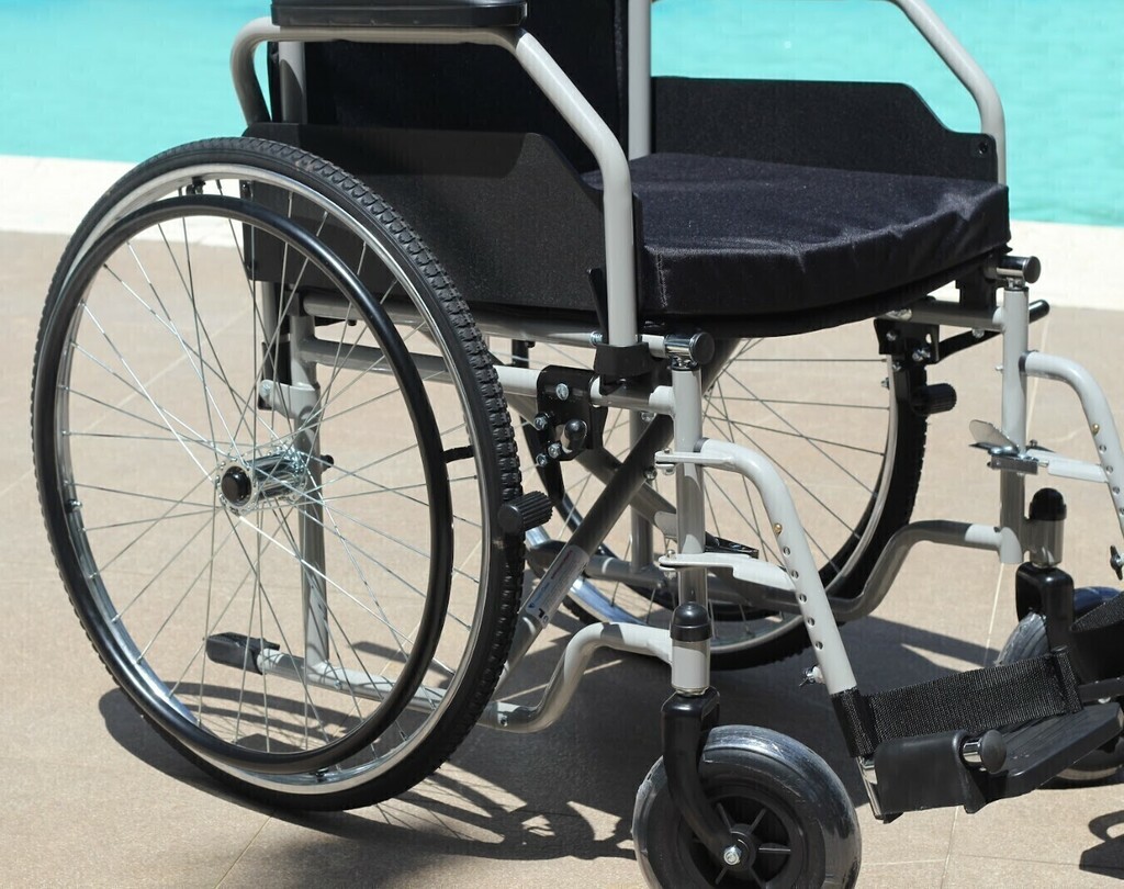 Estrutura reforçada em aço carbono com pintura epóxi. Rodas traseiras de 24'' com pneus maciços antifuro e sistema quick release (fácil remoção). Rodas dianteiras de 8'' em ABS maciças e antifuro. Freios bilaterais reguláveis e ergonômicos. Apoio de pés removível e apoio de braços fixos em PVC. Assento e encosto em nylon dobrável, resistentes e fáceis de limpar. Design dobrável, prático para transporte e armazenamento.