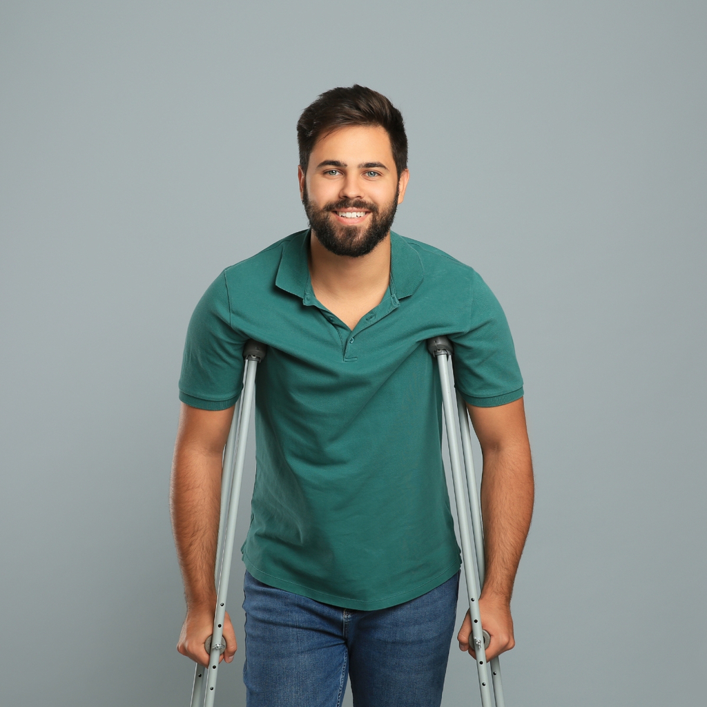 - Capacidade de 120kg; - Almofadas de axila; - Orifício de ajuste; - Empunhadura; - Porca de ajuste; - Liga de alumínio; - Ponteiras aderentes