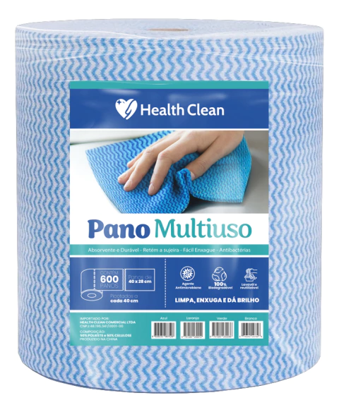 PANO DE LIMPEZA MULTIUSO 28CM X 40CM x 240M - 35GR 600 PANOS - AZUL - HEALTH CLEAN