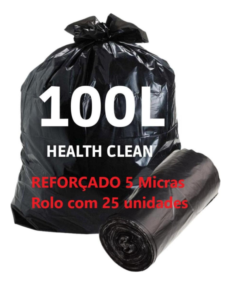 KIT SACO P/LIXO 100L 75 x 85 PRETO SUPER REFORCADO 5MICRAS COM 25 UNDS - HEALTH CLEAN