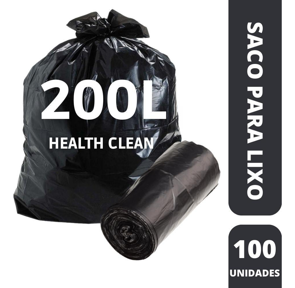 Contém um Rolo com 100 Sacos para lixo 200L preto Health Clean